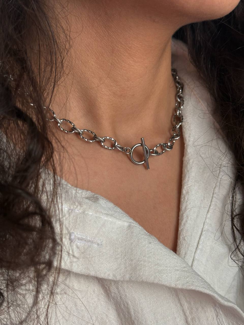 ناموجودگردنبند تیفانی با قفل T سیلور