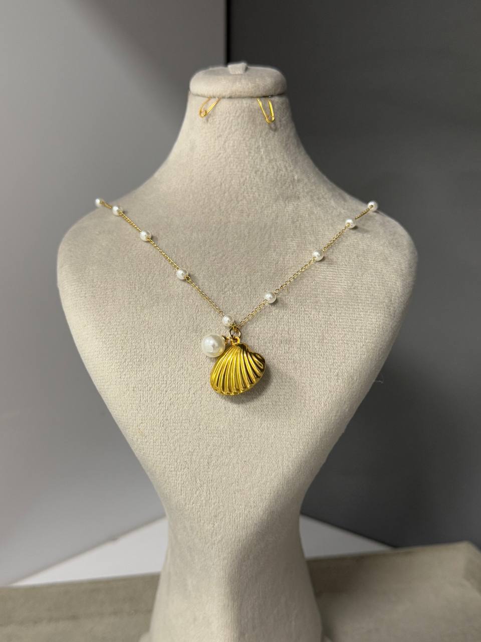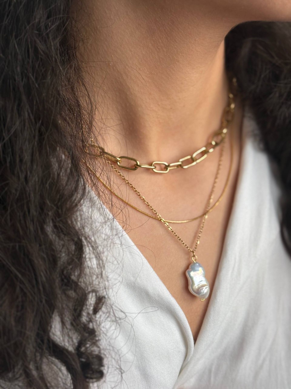 ناموجودست سه تایی گردنبند با آویز سنگ مروارید باروک