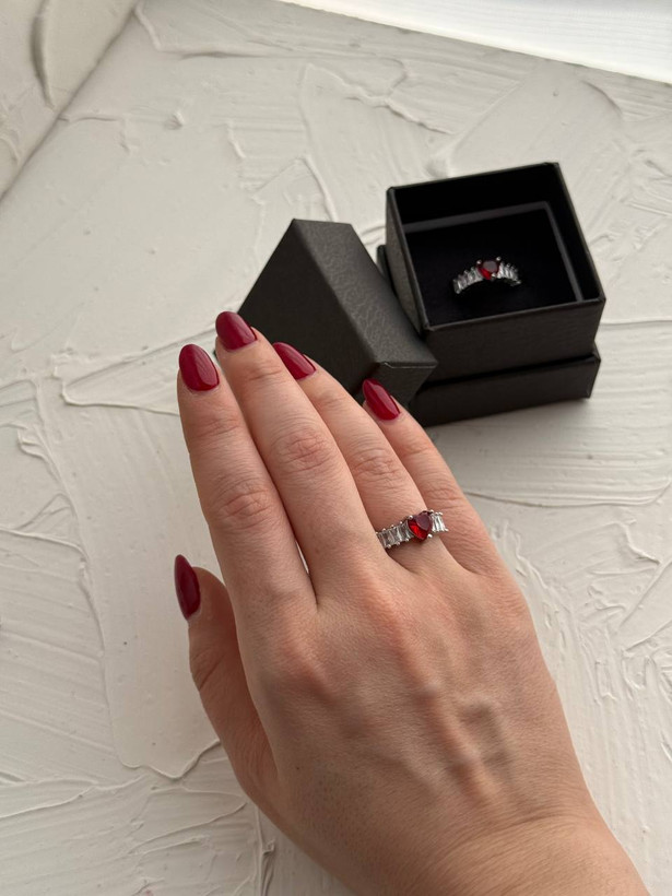 انگشتر تنیسی طرح جواهر با قلب قرمز