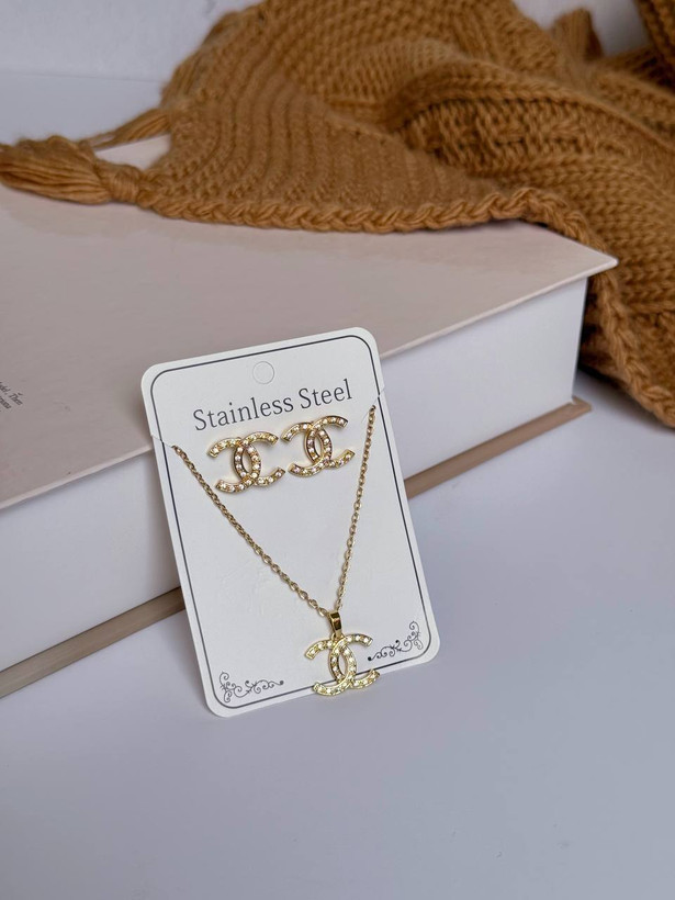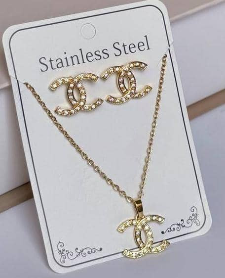 درخشش خاص بودن رو با این ست استیل ضد زنگ تجربه کن ست گوشواره و گردنبند طلایی با طراحی خاص و براق مناسب استایل