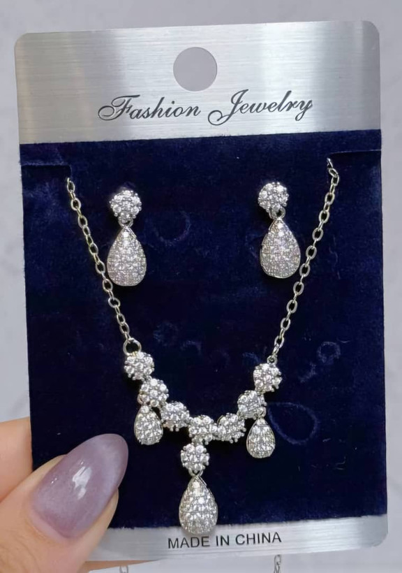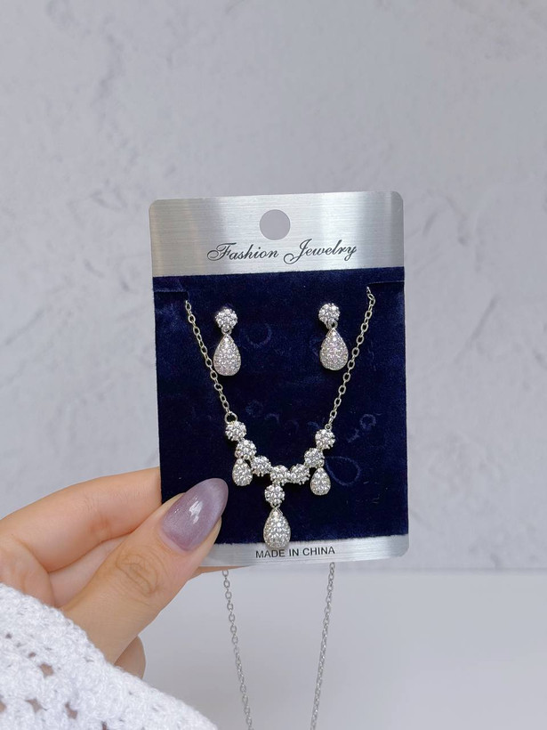 ترکیبی از گردنبند و گوشواره با طراحی درخشان، مناسب مهمونیها و استایلهای خاص ✨