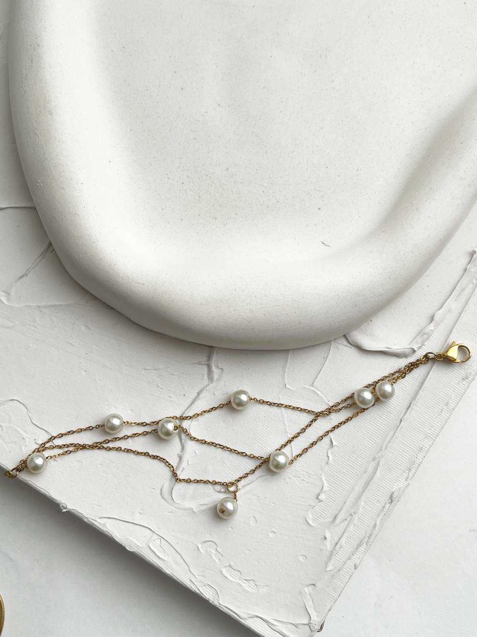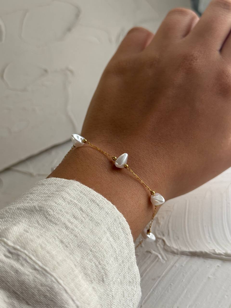 ناموجودست سه تایی گردنبند با آویز سنگ مروارید باروک
