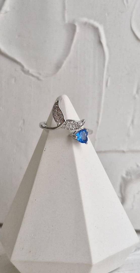 ناموجودانگشتر طرح دم وال با نگین های ظریف و درخشان و قلب آبی